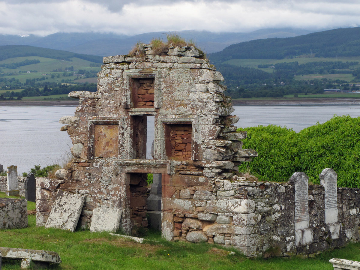 Aisle of Ardullie in Cullicudden burial ground; a substantial memorial was erected in this kirkyard to commemorate David Mackenzie and his family; photo by Andrew Dowsett