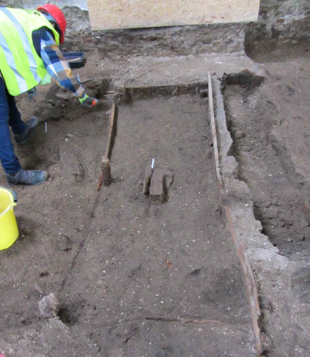 Deep under a layer of grave-diggers’ surplus spoil, the archaeological volunteers discovered strange wooden structures, at the bottom of which rotting vegetation was found. These have been puzzled over, and their similarity to mushroom beds noted. They had been constructed from shortened fenceposts and planks. Had enterprising parishioners been using at one time the dark, sheltered, and largely unused mausoleum as a location for growing mushrooms?