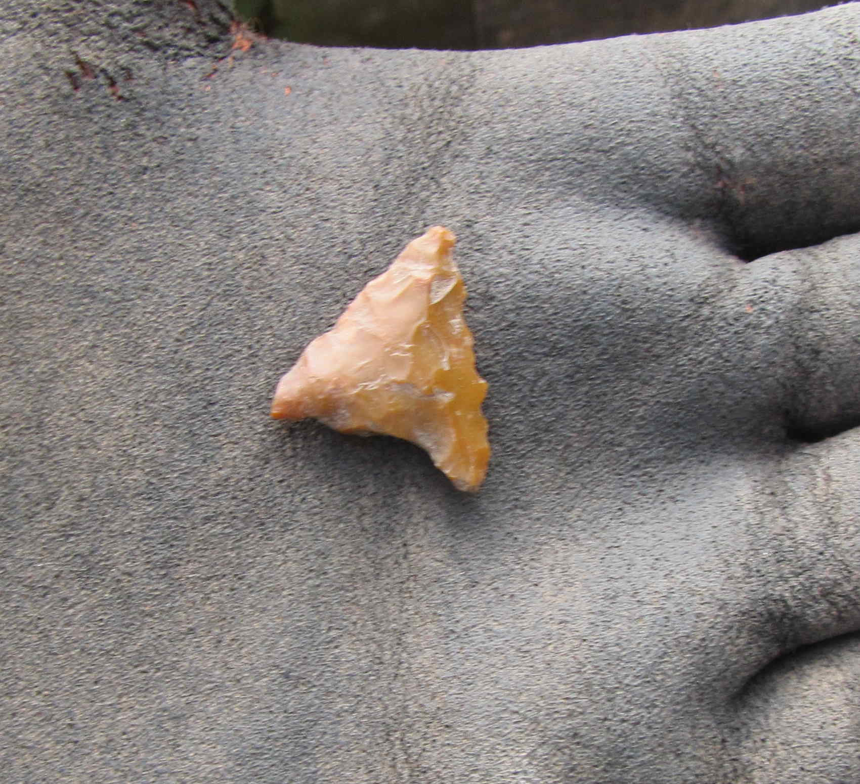 The beautiful and tiny flint arrowhead; photo: Jim Mackay