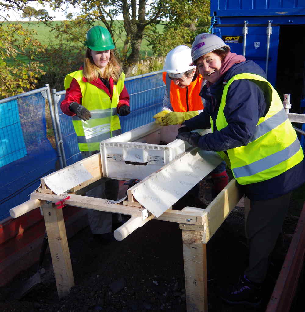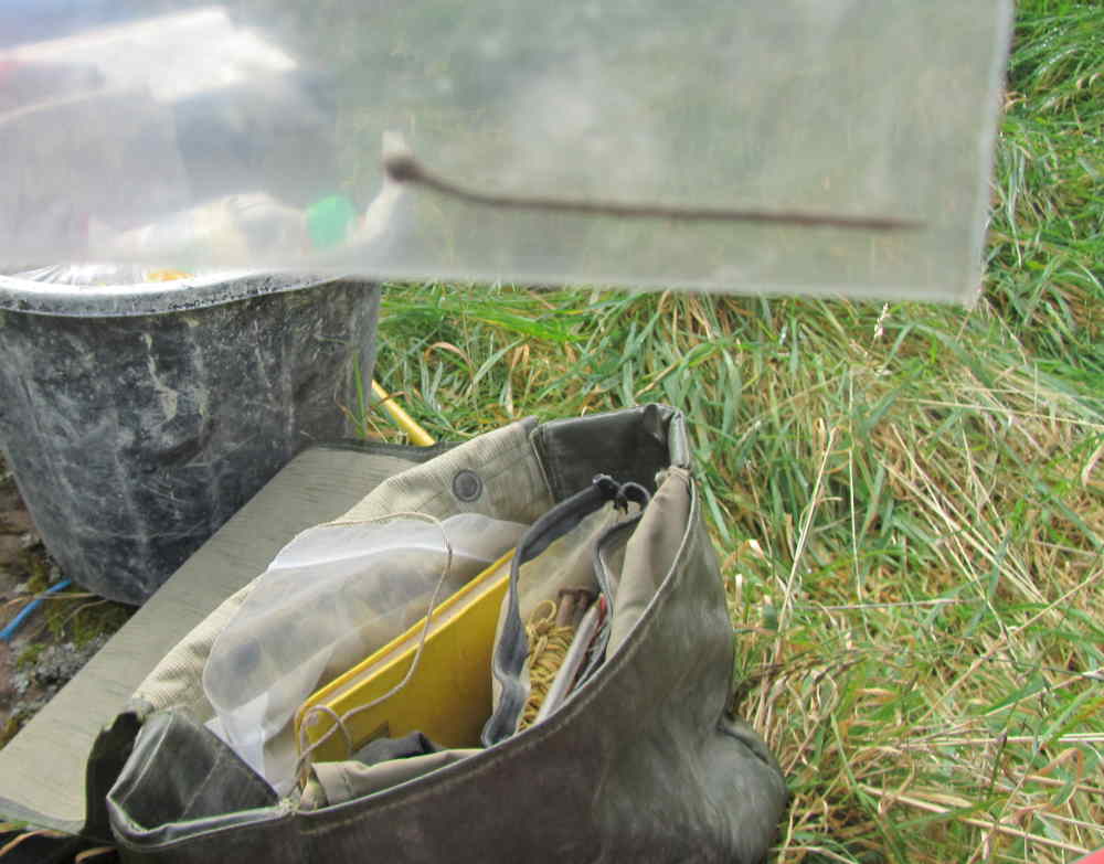 In late October, the archaeological volunteers began their painstaking work under the supervision of Lynne and Lachlan Mckeggie of Highland Archaeology Services, scraping soil loose and placing in buckets. The buckets of soil were then sieved through a marvellous piece of bespoke kit, comprising a large plastic fish crate and perforated metal, to identify any items of interest.