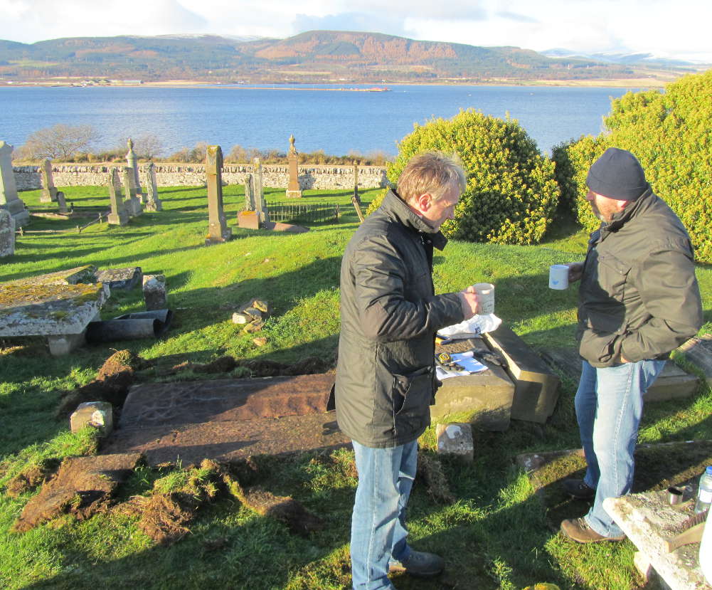 David Lindsay and Richad Groom of Stoneworks were commissioned by the Kirkmichael Trust, with funding from the Heritage Lottery Fund, to examine two worn and broken medieval stones in Cullicudden and re-create them – as they were when new more than 600 years ago! Over the next few weeks, on this page, they will describe in their own words this challenging but exciting process, from their first arrival in Cullicudden to record the original stones to the mounting of the newly-carved stones in the refurbished nave at Kirkmichael.
