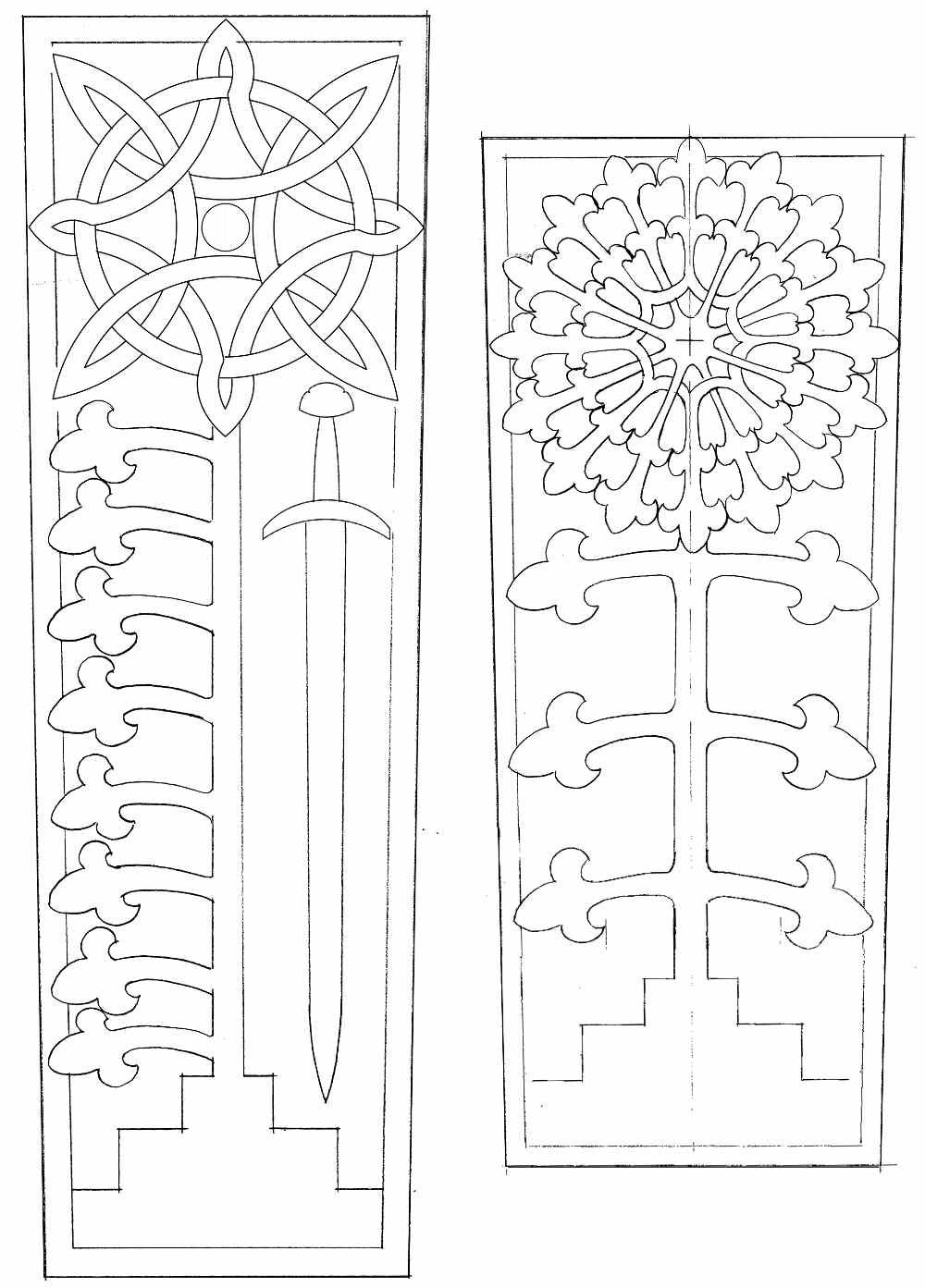 As Cullicudden H is broken at the base there was a greater amount of speculation. A stepped calvary base was agreed on to have parity with Cullicudden F. These are the two agreed final drawings. Details are simplified, greater definition will materialise during the carving process.