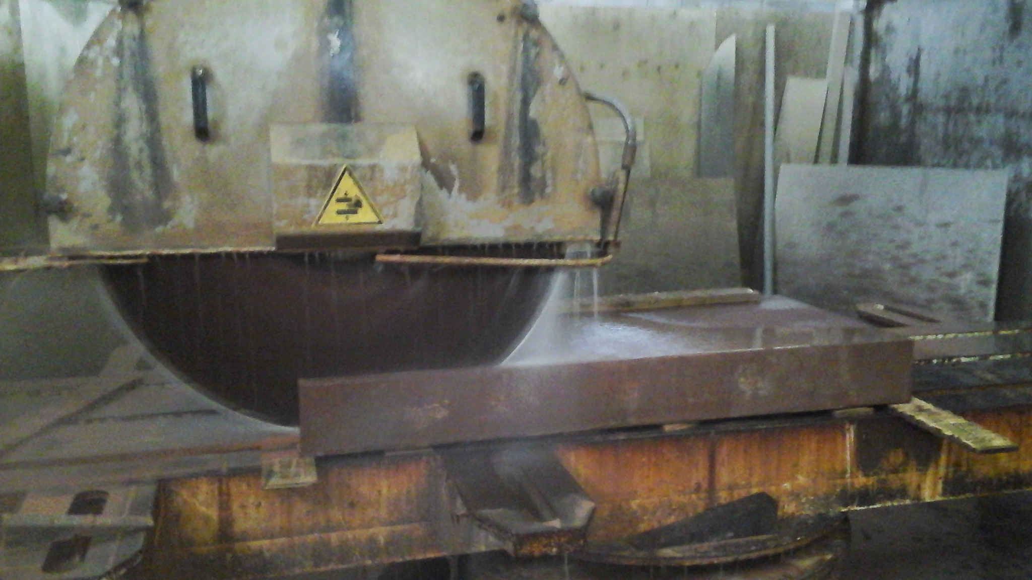 A large quarried block known as a random is slabbed to the required thickness on a diamond tipped steel saw, and then the slabs are secondarily sawn to the required dimensions.