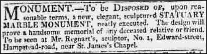 Regnart was born in Bristol in 1759, married twice, and died on 19 November 1844. He was himself buried in the Hampstead Road cemetery in London, and it would be interesting to see what memorial graced his tomb!