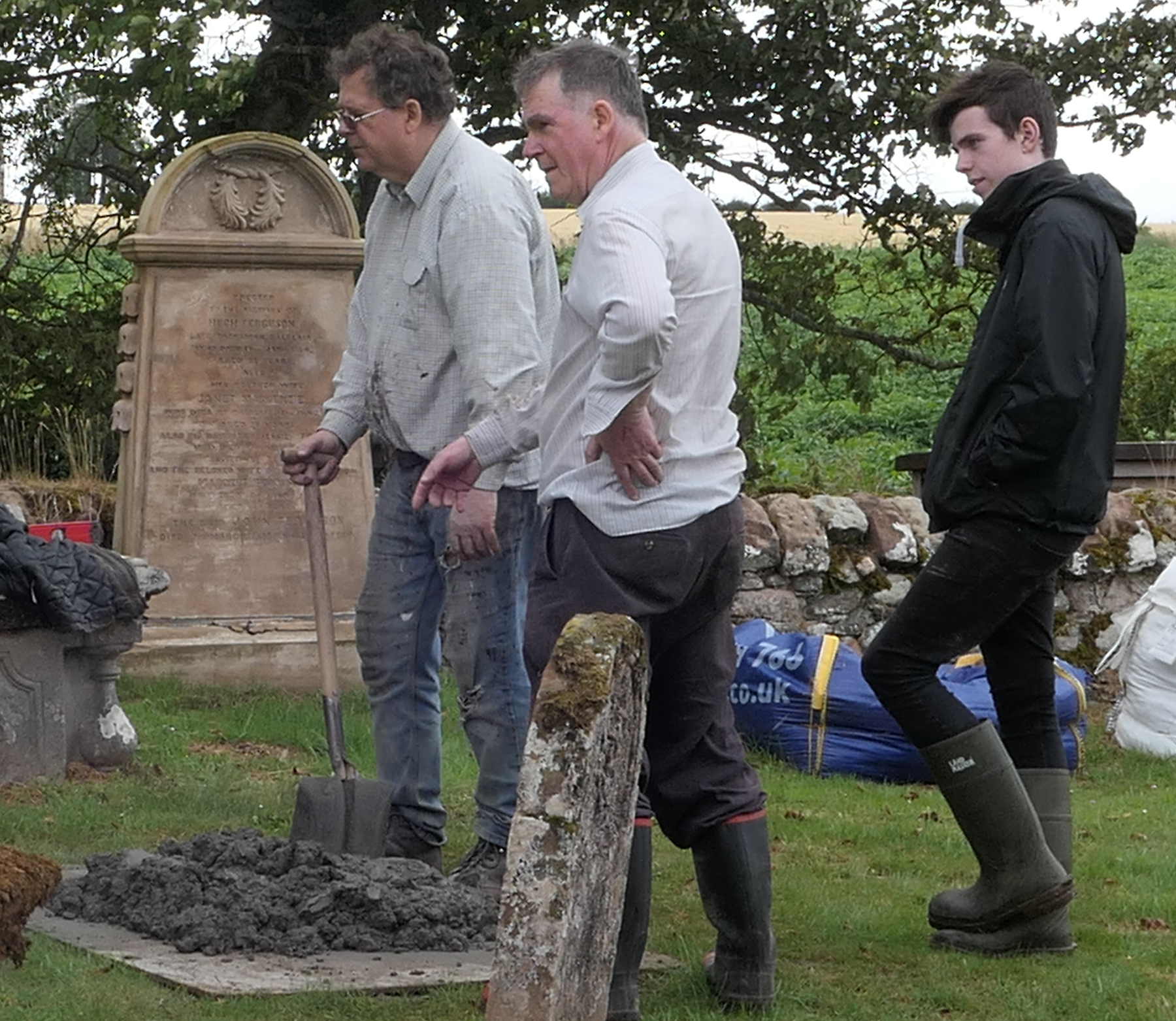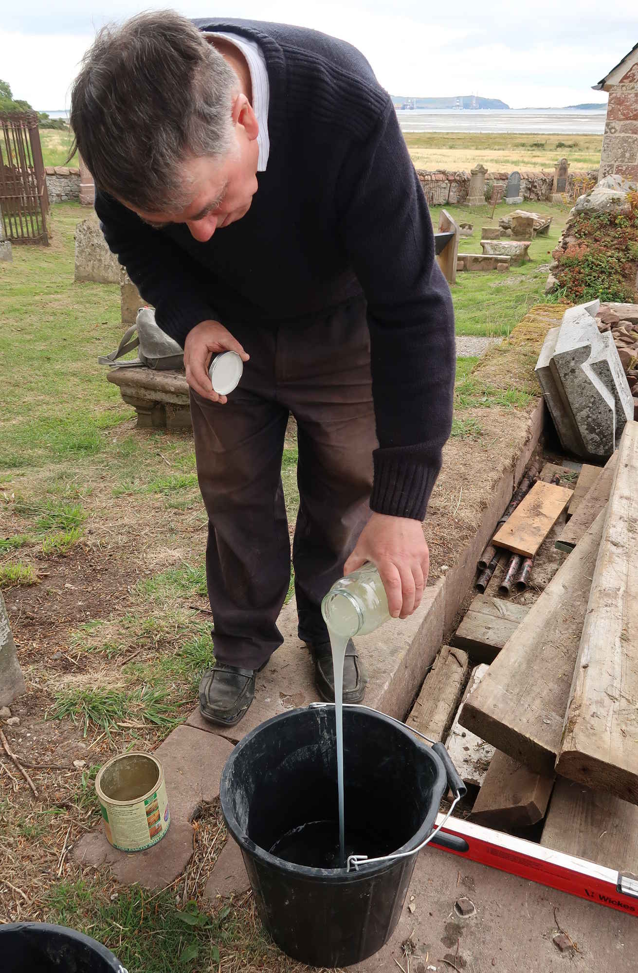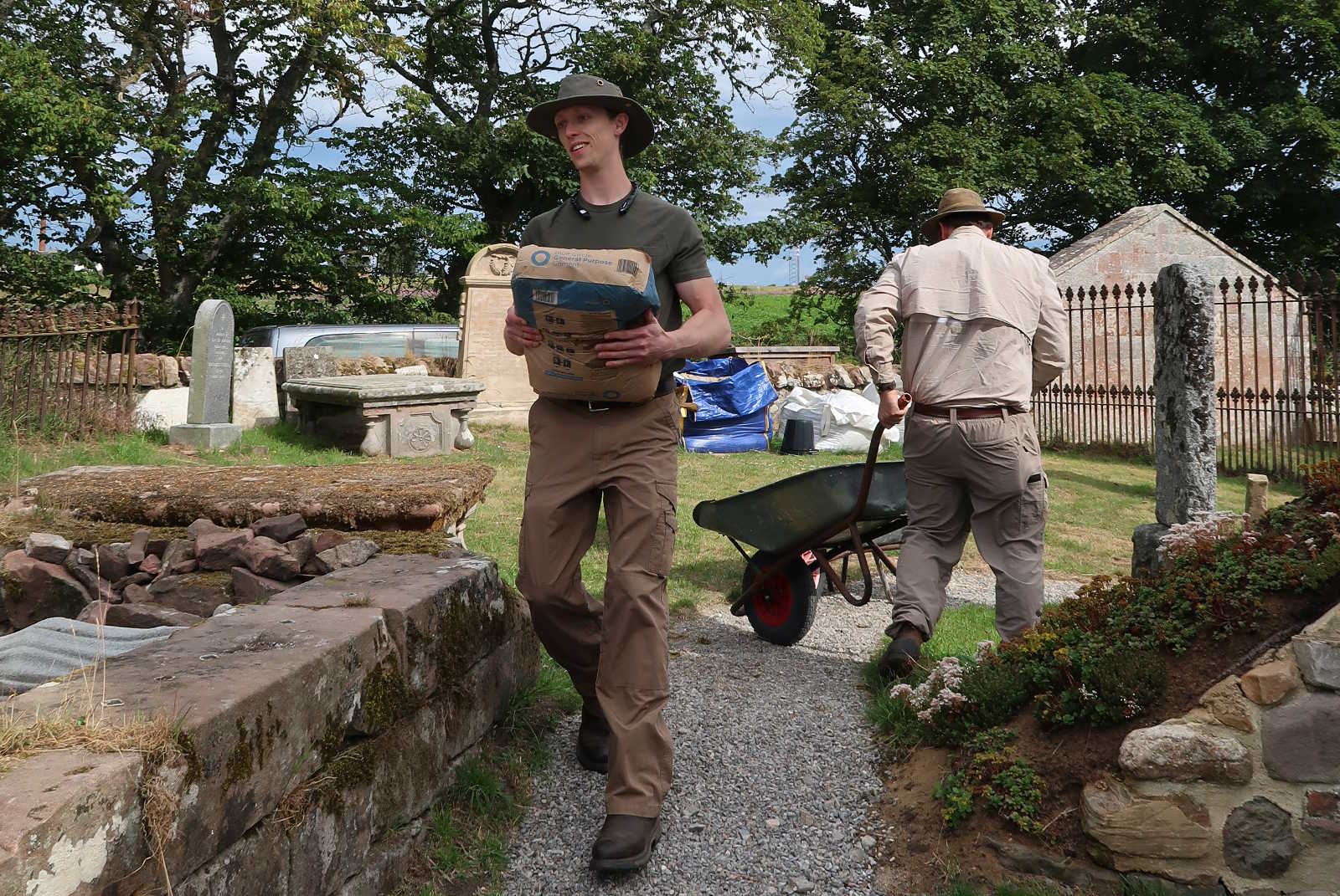 An assist with carrying in the cement from the American archaeology students then digging at Castle Craig; they helped out at Kirkmichael on Saturday mornings!