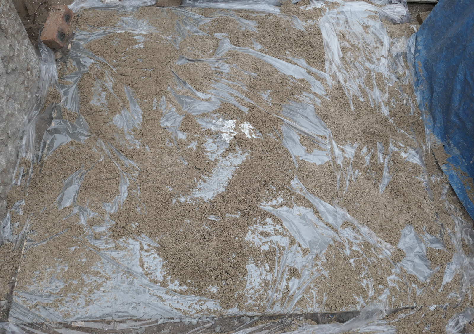 Plinth suspended while we get on with mixing the mortar.