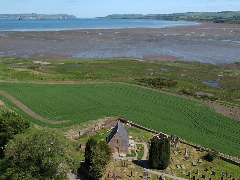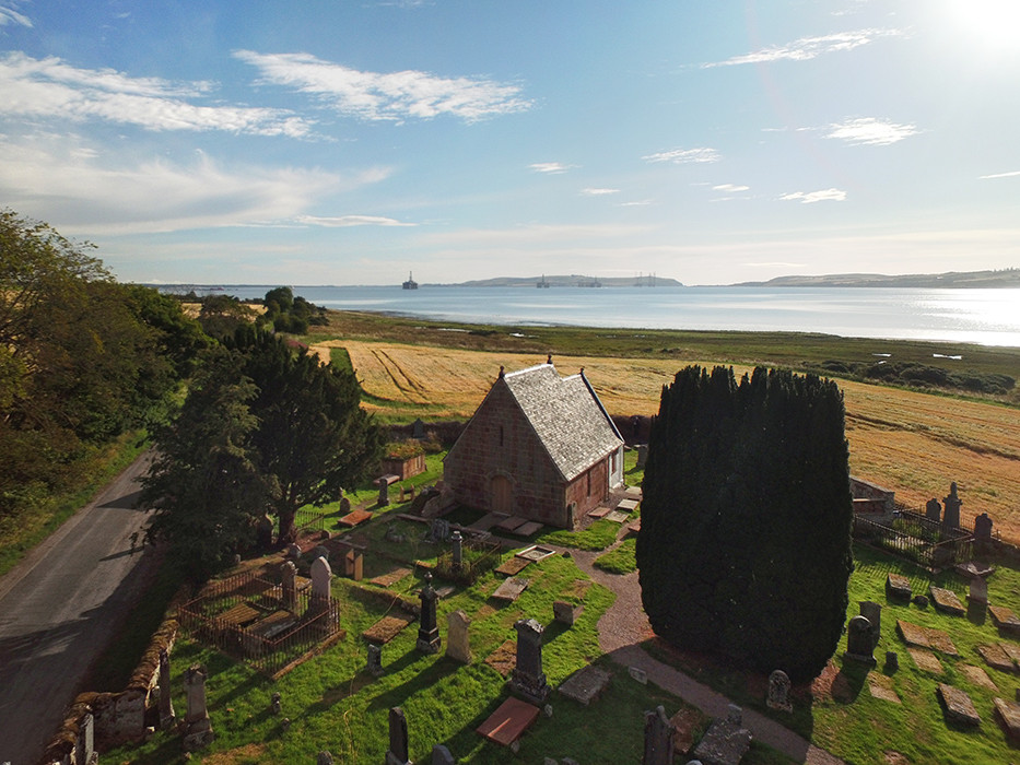 Flight over Cullicudden Kirkyard, the other ancient kirkyard in our Parish of Resolis, 4 August 2016. The Trust has conducted several guided tours of this wonderful old site and several stories in its “Story behind the Stone” series are based here.