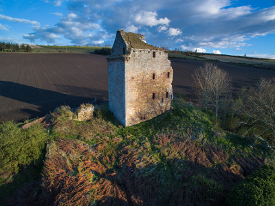 Flight over Castle Craig, the only remaining castle in Resolis, recently with stabilisation timbers put in place. Urquhart clan members hope to restore or at least stabilise this old keep. The Trust provides guided tours of Castle Craig on request. Flight 15 May, 2016.