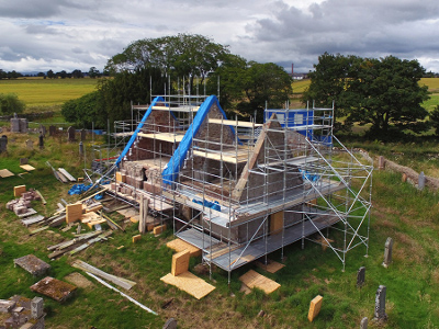 18 February 2017: the gable and chancel now roofed, the scaffolding down, the Lady Ardoch and the Grant of Ardoch mausolea repaired and just the finishing touches now to go. The building is now water-tight, and looking fantastic!
