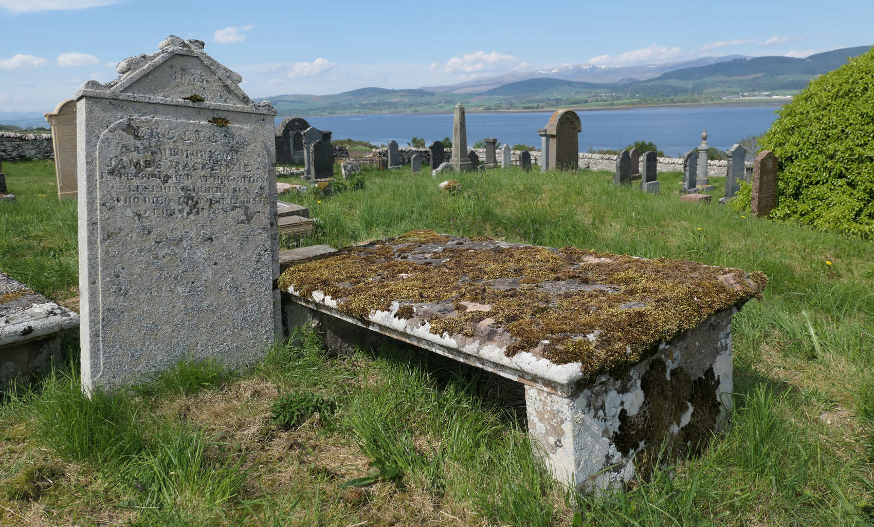 the Mackenzie tablestone in Cullicudden, with headstone to son James beside it; photo by Jim Mackay